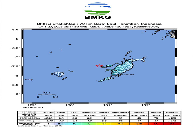 Gempa Magnitudo 5,3 Guncang Laut Banda